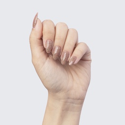 Using the scoop provided, gently pour the shimmer onto the uncured polish.